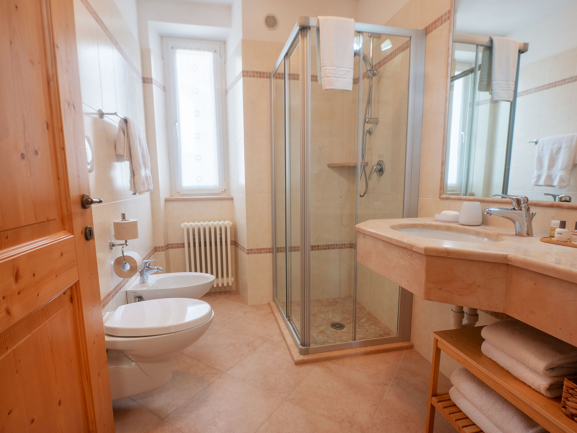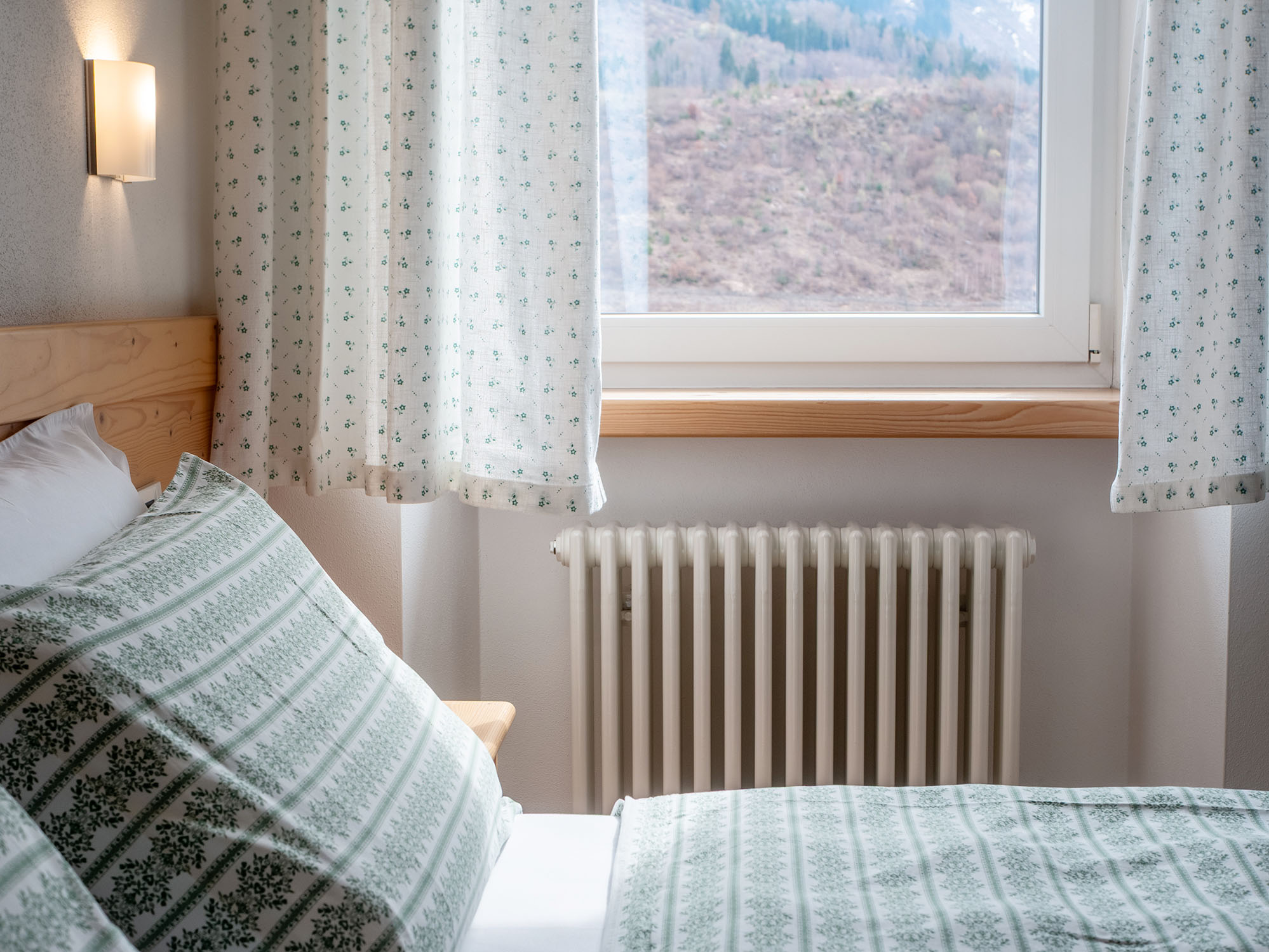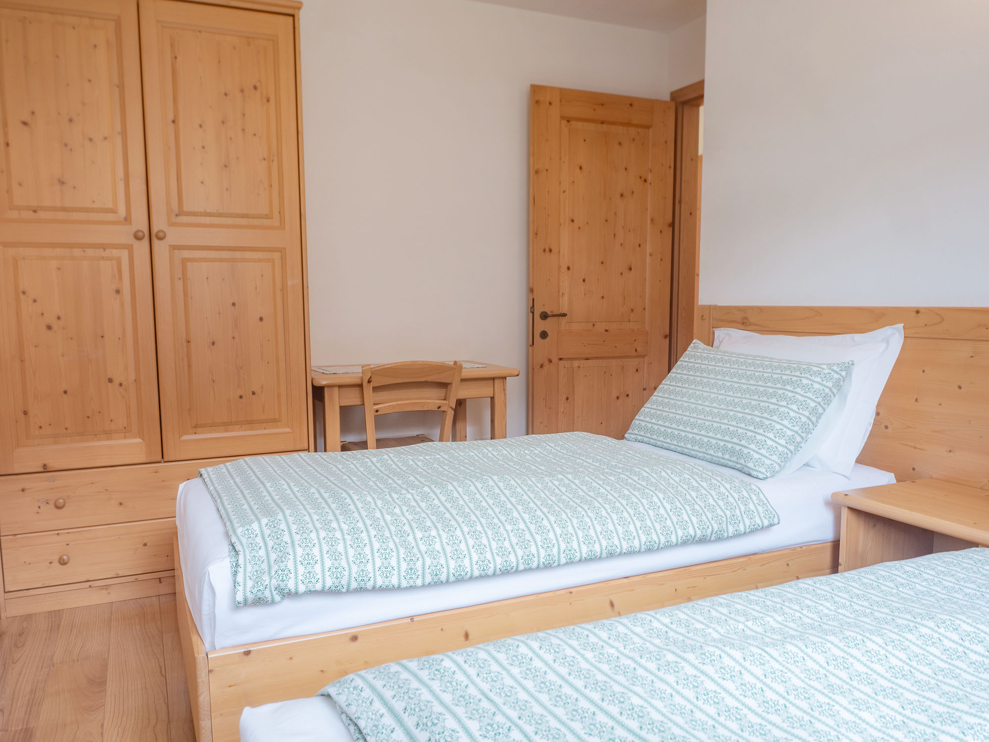 Appartamento luminoso e panoramico. Adatto a famiglie o gruppi di amici di 3 o 4 persone. Composto da 2 camere da letto, bagno finestrato e cucina abitabile con balcone rivolto verso il lago. L’arredamento è in stile tipico trentino con mobili in legno e tessuti naturali.